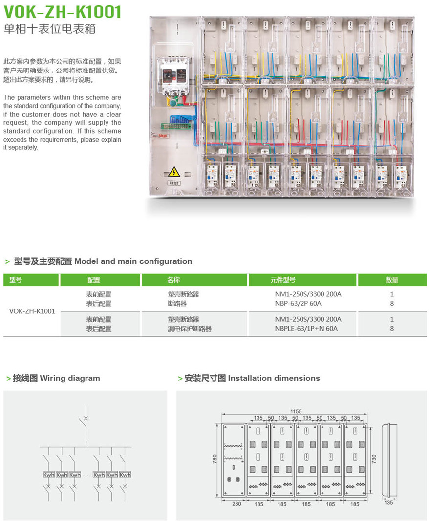VOK-ZH-K1001 单相十表位计量箱