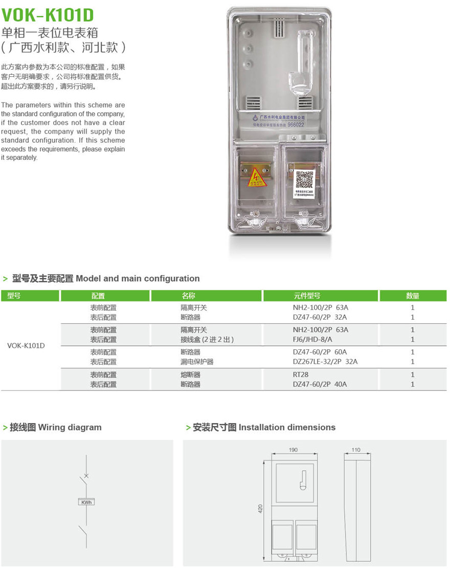VOK-K101D 单相一表位计量表(广西水利款、河北款)