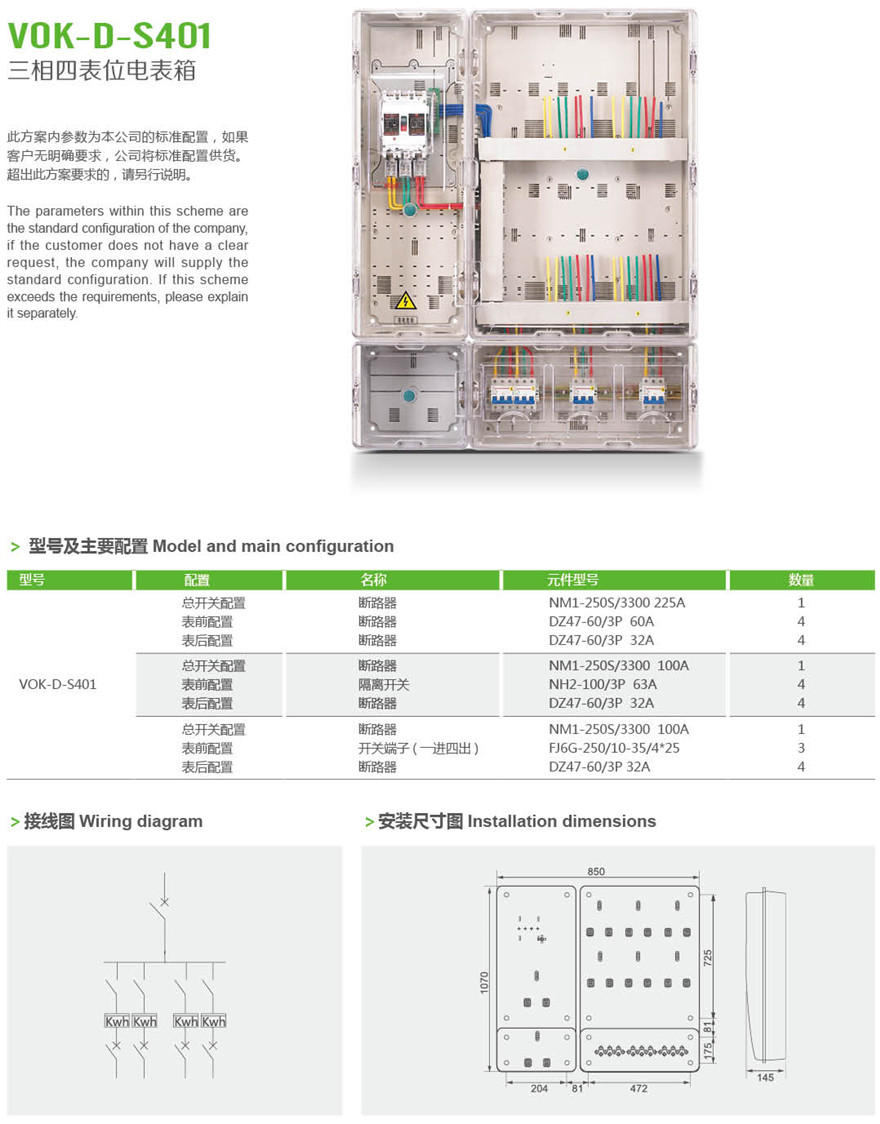 VOK-D-S401 三相四表位电表箱