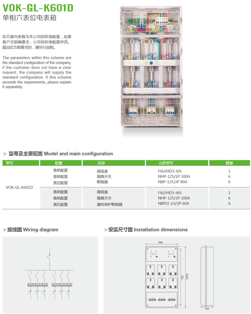 VOK-GL-K601D 单相六表位电表箱